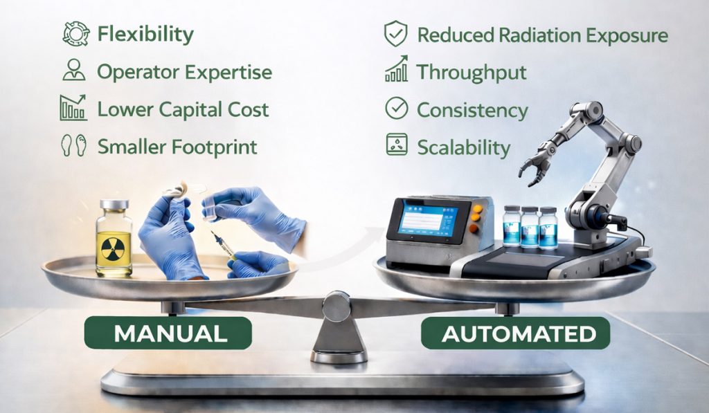 More recently, new drivers have emerged that further accelerate movement toward automation. The market for isotopes is rapidly expanding as global demand rises, and new drug approvals are shifting from clinical scale to commercial scale production. As production volumes grow, organizations are seeking ways to increase throughput, which naturally pushes the conversation toward greater automation.